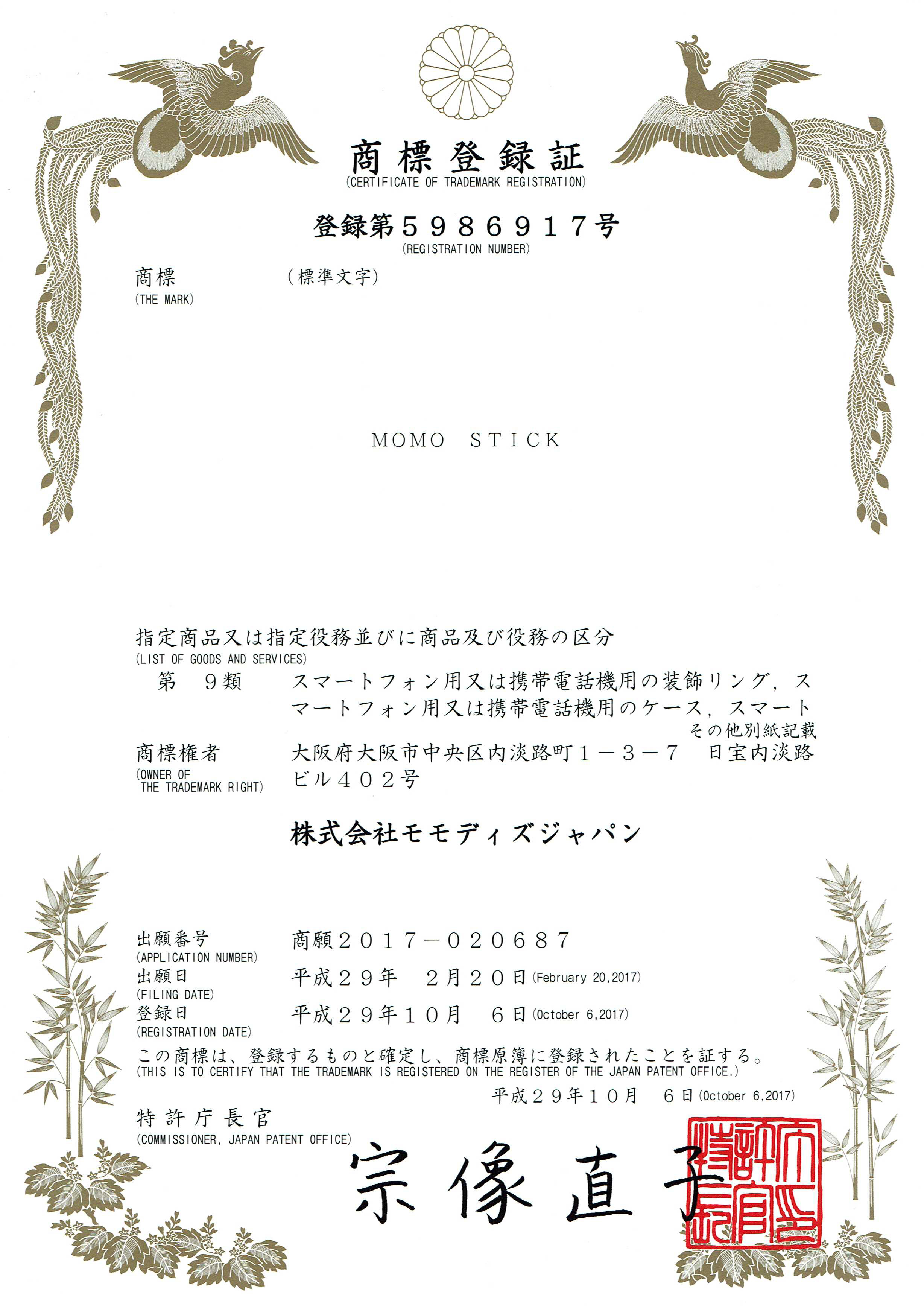 保有商標権のお知らせ 下記の商標は株式会社モモディズジャパンが保有しております。 「MOMODIZ」、「MOMO STI ...